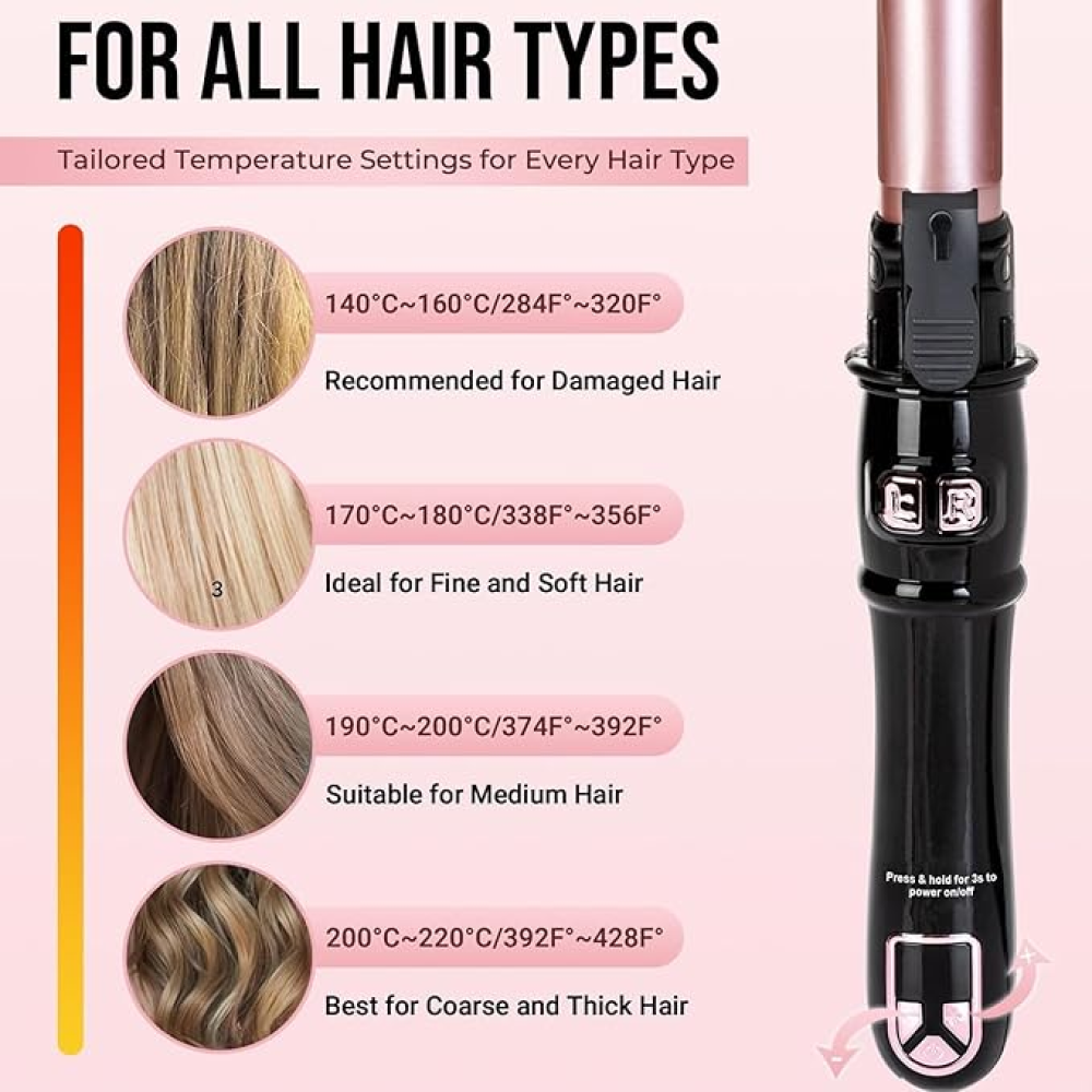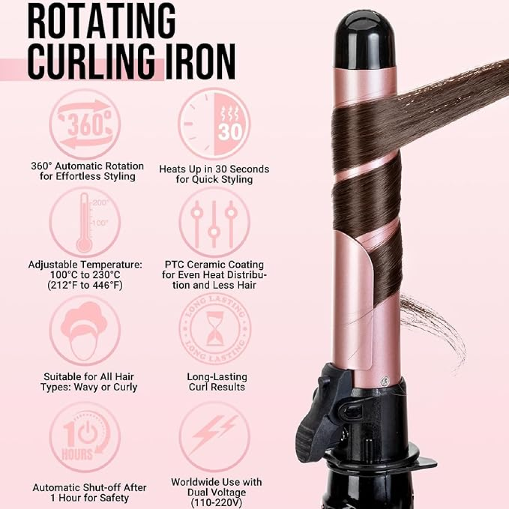 احصلي على تموجات شعر مثالية بجهد أقل مع اداة تجعيد الشعر. بفضل دوران 360° والتسخين السريع ودرجات الحرارة القابلة للتعديل، يمكنك تصفيف شعرك بدقة واحترافية في دقائق، مع حماية من الحرارة وتوافق عالمي للطاقة.