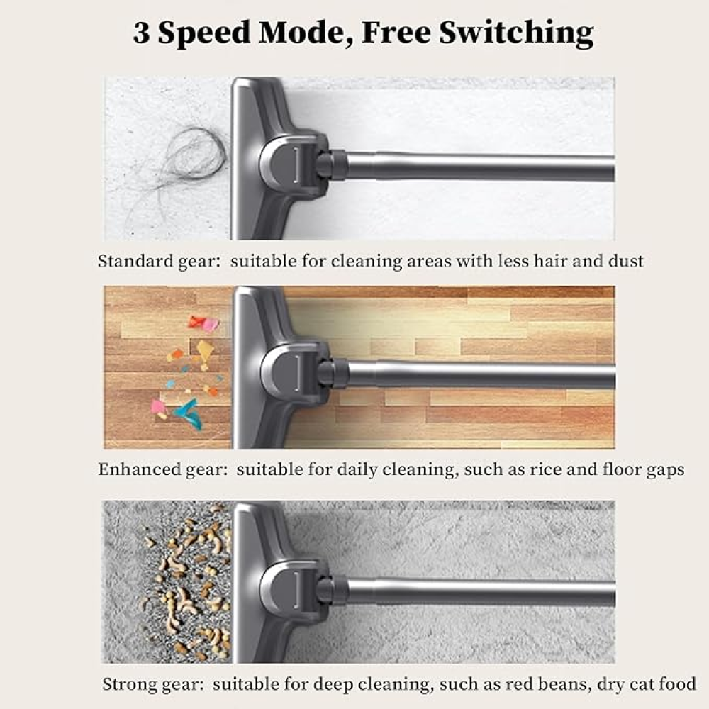 مكنسة كهربائية يد 4 في 1 تجمع بين الأداء القوي والتصميم العملي، مزودة بنظام ترشيح HEPA وفلتر ستانلس ستيل مع تصفية سايكلونية. تقدم 3 أوضاع سرعة قابلة للتبديل لتناسب مختلف مستويات التنظيف من الغبار الخفيف إلى التنظيف العميق.