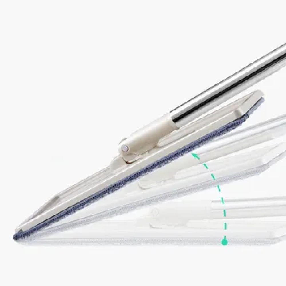 - رأس الممسحة يدور بزاوية 360 درجة للوصول إلى الزوايا الضيقة تحت الأثاث بسهولة