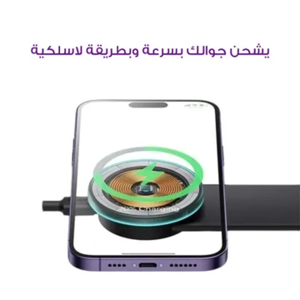 قاعدة شحن لاسلكية تجمع بين الأداء العملي والتصميم العصري، حيث توفر شحنًا لاسلكيًا سريعًا متوافقًا مع MagSafe وتعمل أيضًا كمسند أنيق يمكن تعديله بزاوية 360 درجة لمشاهدة مريحة.
